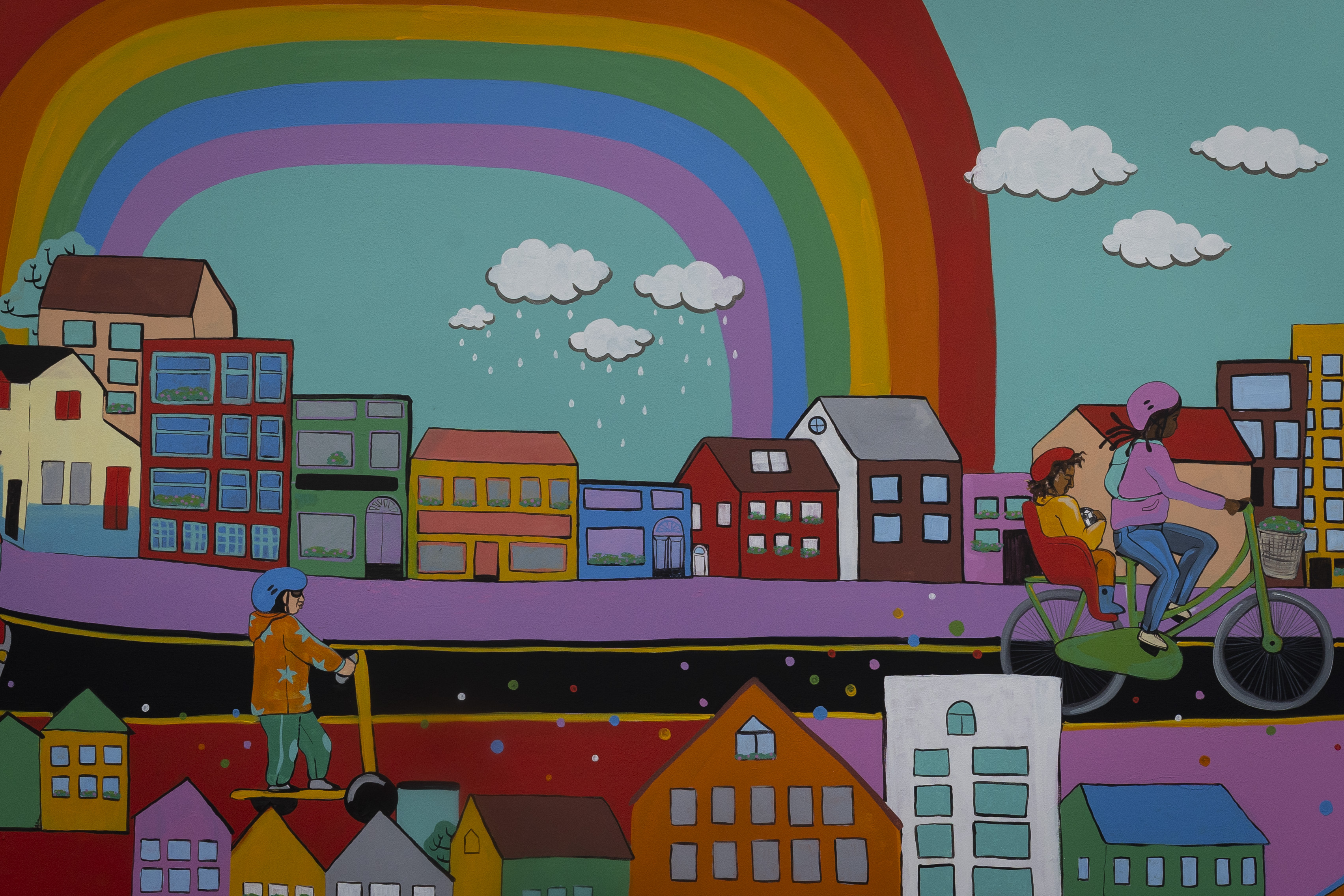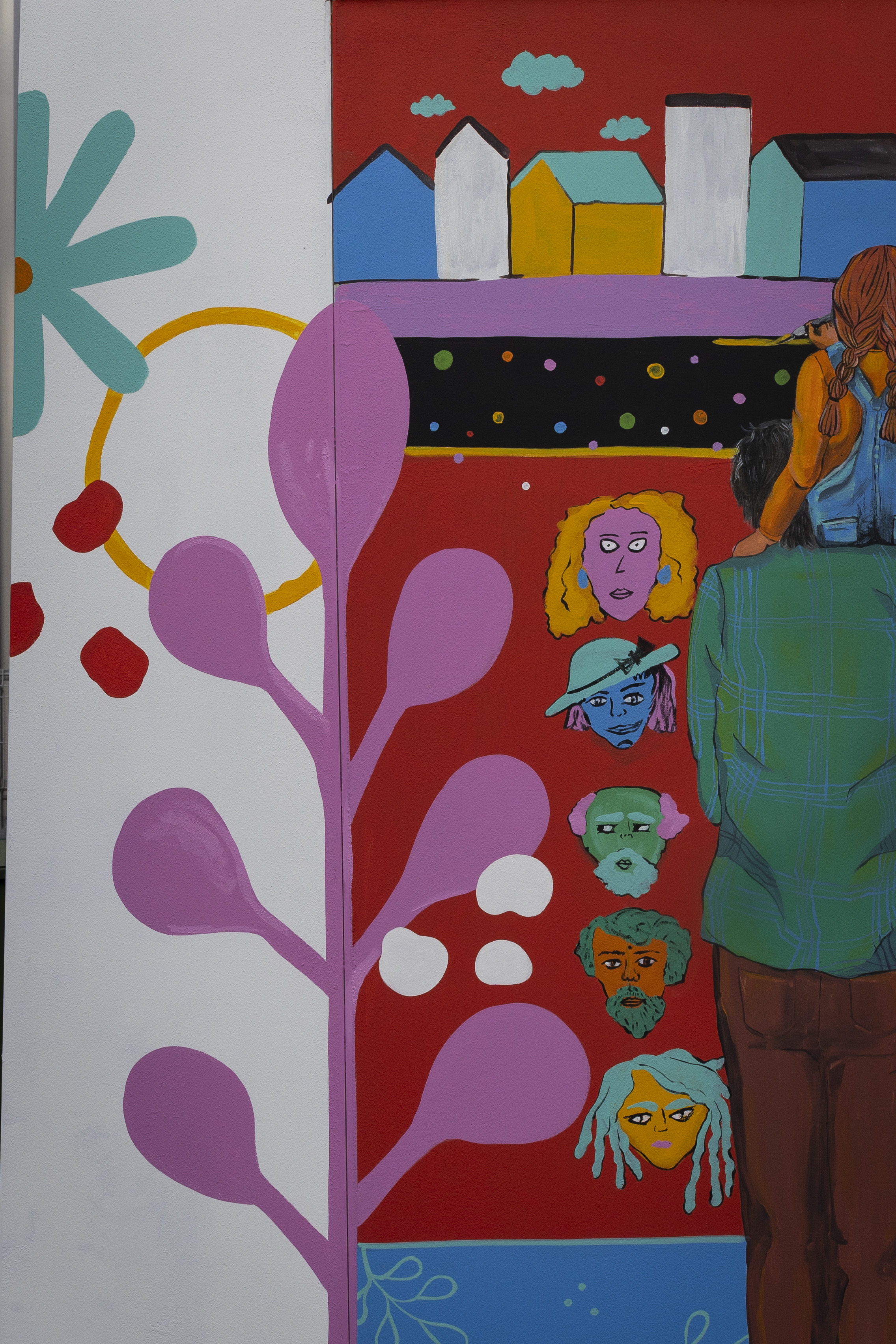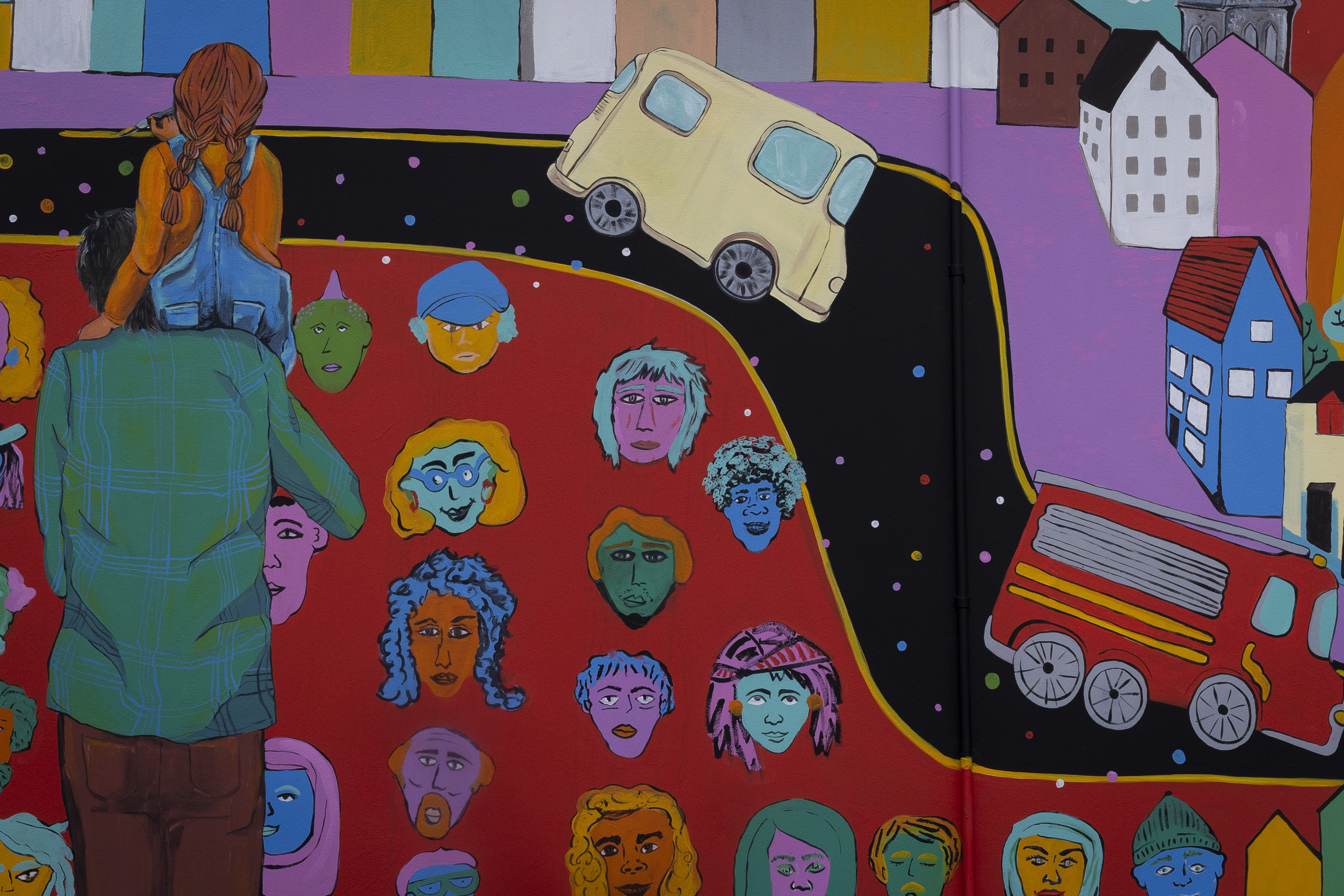 This project is a collaborative initiative, organized with the local community through Douglas Street Business Association. Over the course of 4 creative workshops, we engaged neighbours of all ages to explore and develop ideas for a mural. During these sessions, we developed a variety of art activities, where families and individuals came together to create pieces inspired by the themes: identity, community, playfulness and neighbourhood. The project has brought together diverse voices and talents.