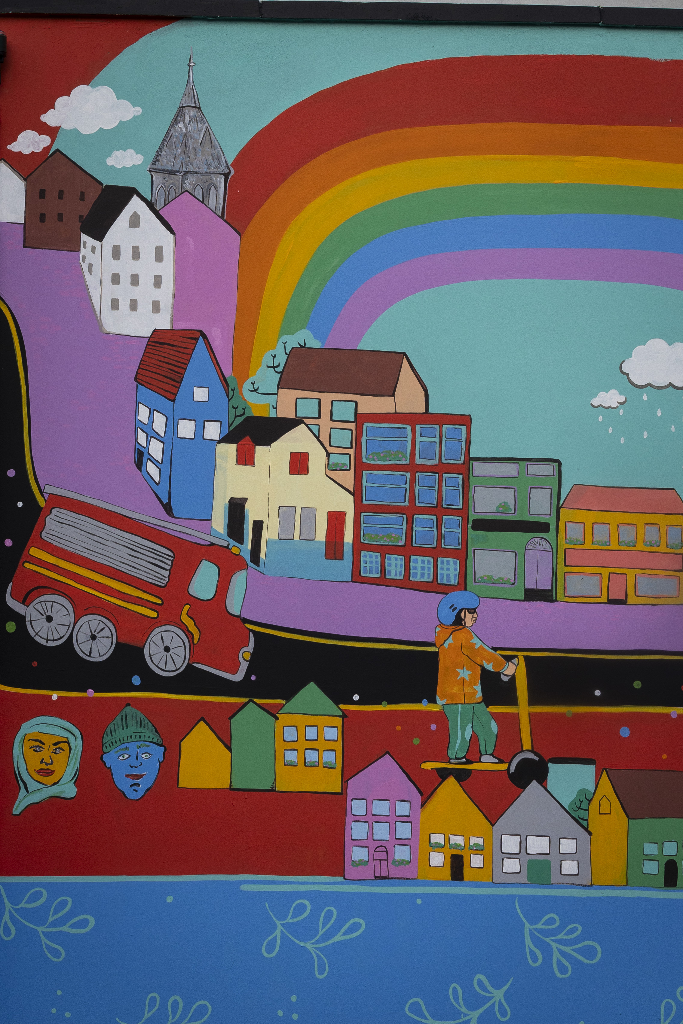 Following this stage, during October and November 2024, neightbours joined the painting process of the final mural located in Rutland Square, behind the South Parish Community Centre.