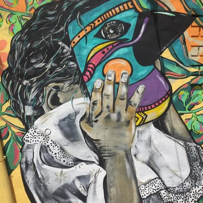 I am Blanca, an Argentinean-Irish visual artist, muralist and art facilitator, known under the pseudonym Libertad, which means “Liberty.” Since 2019, I have dedicated myself full-time to muralism, traveling and collaborating with communities to create collective works that celebrate identity, biodiversity, and cultural heritage